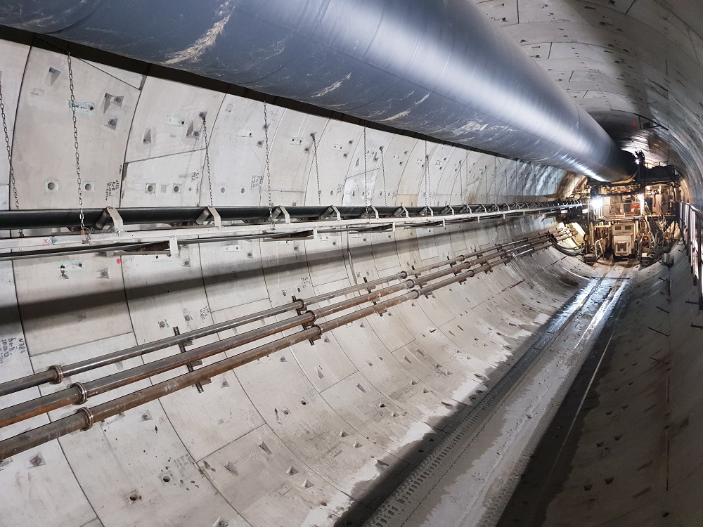 Средняя скорость составила 8 колец в сутки (10 метров тоннеля). Максимальное количество колец за сутки - 12. Блоки железобетонной обделки тоннеля изготавливались в Петербурге на заводе ЖБИ.