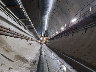 Продолжится работа и в уже пройденном тоннеле. Сейчас там уложено 720 погонных метров жесткого основания и в день сбойки планировалась заливка очередной 400-кубовой партии бетона. Параллельно закупается арматура для сооружения вентперекрытия тоннеля, работы начнутся в ближайшее время. Здесь, в Москве, применяется та же уникальная технология, что была впервые опробована на Невско-Василеостровской линии в Петербурге. Она позволяет совмещать проходку и обустройство тоннеля.